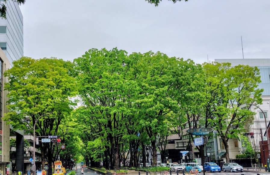 本日は、雨模様で緑が綺麗でしたので、信号待ち🚥の間にパチリ🌿