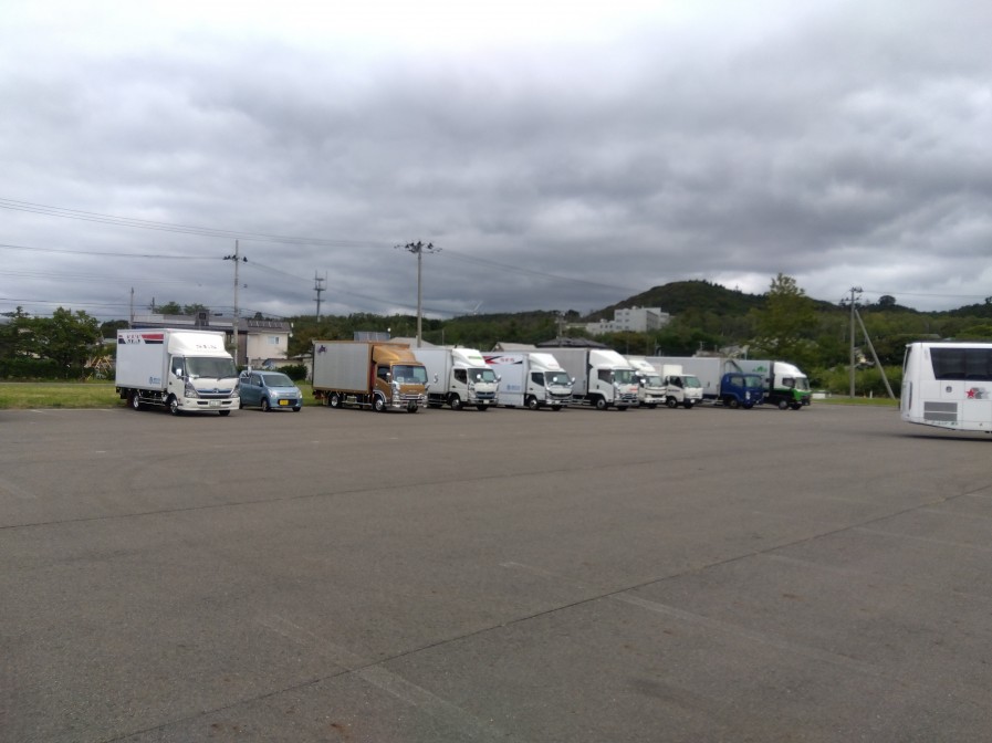 指定待機場所には運搬トラックがズラリ!