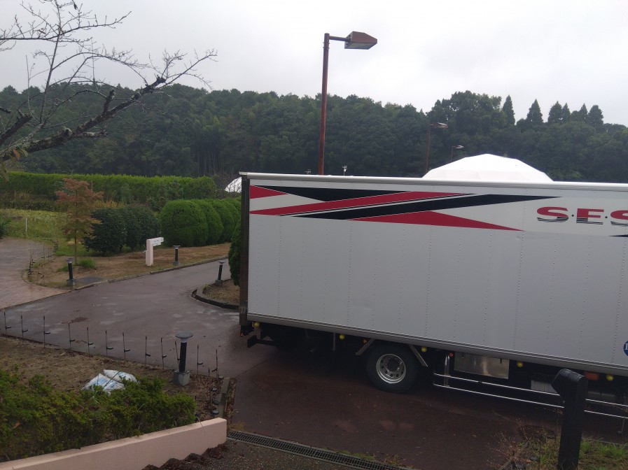 明日の本番に向けて前日の練習会場&宿泊施設 UEガーデンリゾートへ搬入