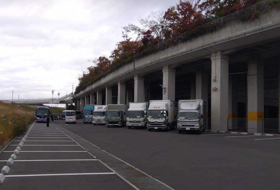 例年通り!待機場所にてスタッフさんからお声がかかれば建物内へ向かって楽器の積み降ろし。バス、楽器運搬トラックのドライバーさん達はお行儀よく待機中😪